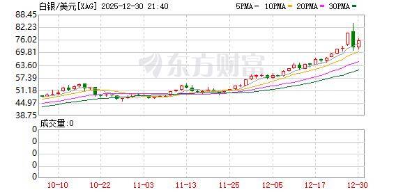 此前两个交易日,白银价格走出了一波过山车行情。12月26日,伦敦银现货大涨10.47%;12月29日,伦敦银现货盘中最高冲刺至83.97美元/盎司,但随后高位跳水,全天跌幅达到9.08%。