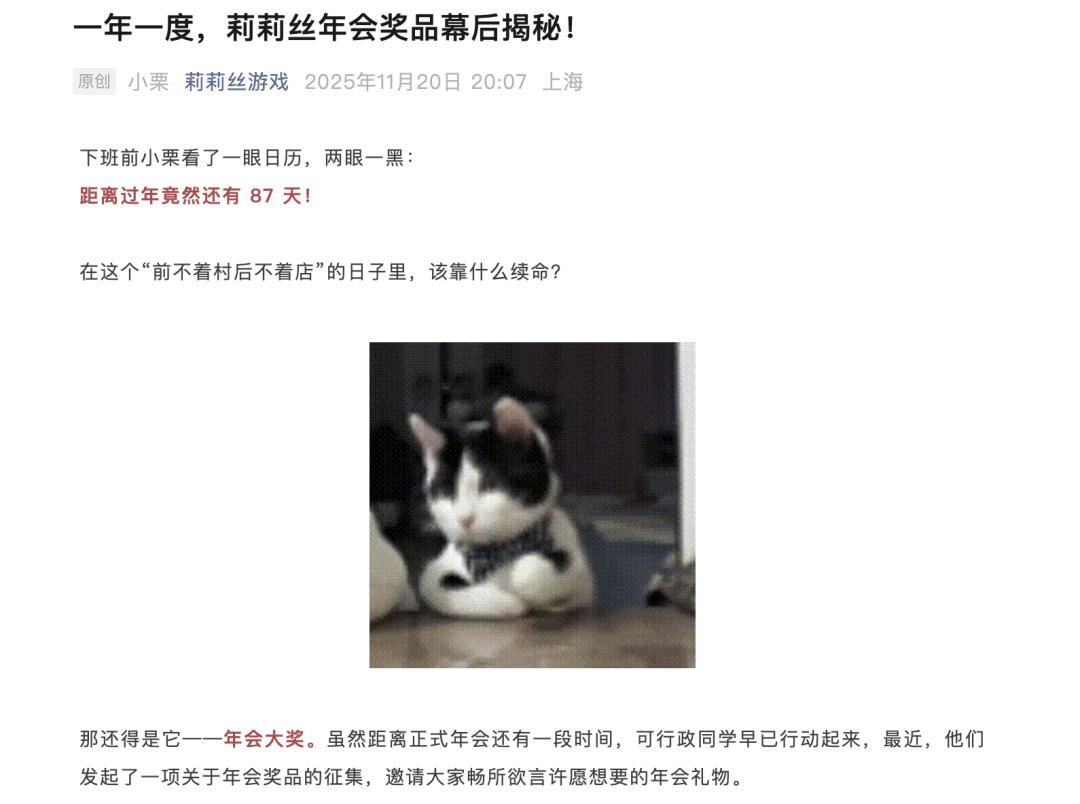 早在去年11月,莉莉丝就对年会礼品进行了「宣发」,可以说是今年最早预热年会礼品的游戏公司。