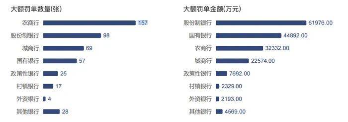 银行类型分布上,农商行、国有银行、股份制银行成为受罚主力,但特点有所不同。