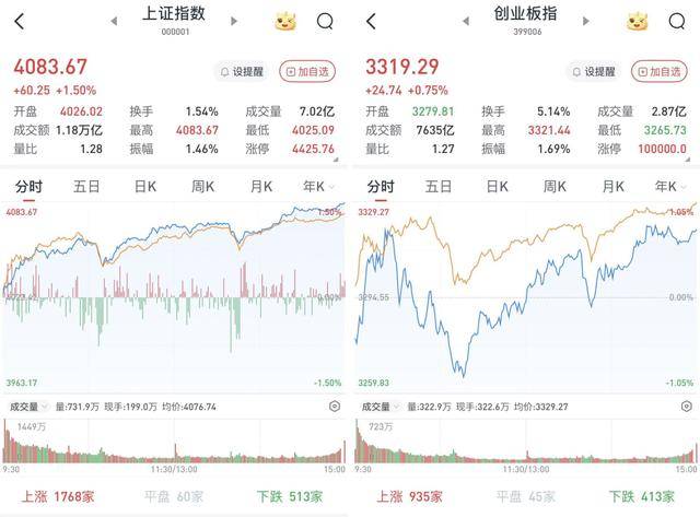 至收盘,上证综指涨1.5%,报4083.67点;科创50指数涨1.84%,报1429.3点;深证成指涨1.4%,报14022.55点;创业板指涨0.75%,报3319.29点。
