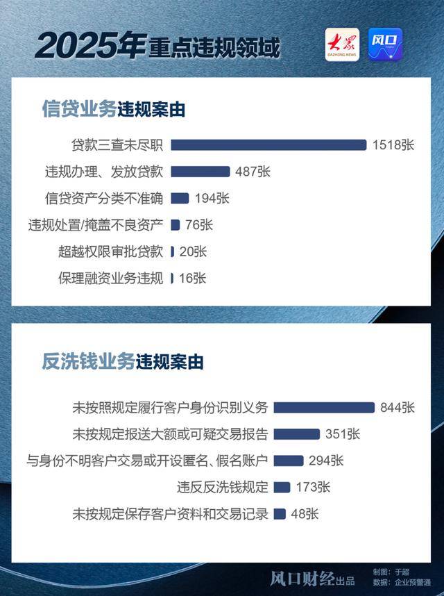 2025年银行违规领域出现显著结构性变化。传统重点领域信贷业务违规罚单数量从3898张降至2883张,减少1015张,降幅达26.04%。