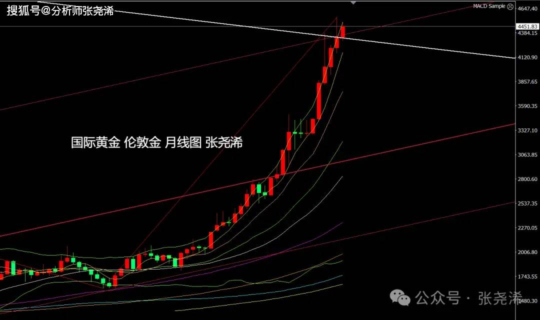 反之,如本月再度收取倒垂至趋势线之内,则需留意后市有再度展开较大回调,去回踩4000-3900美元区域或更低位置的风险;