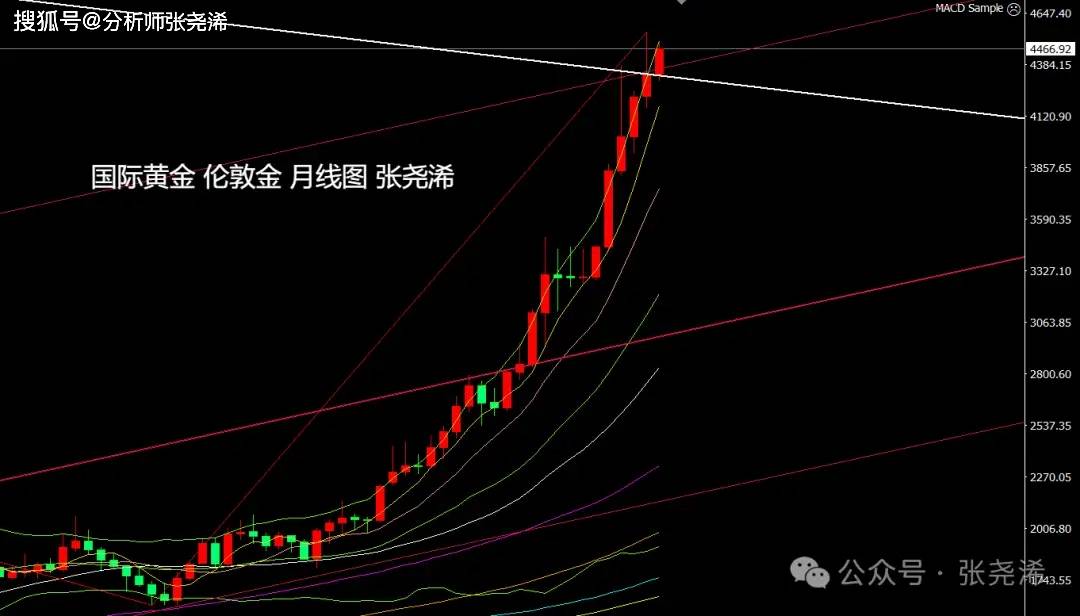 反之,如本月再度收取倒垂至趋势线之内,则需留意后市有再度展开较大回调,去回踩4000-3900美元区域或更低位置的风险;