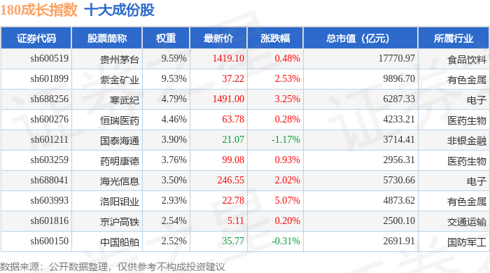 1月9日180成长(000028)指数涨0.88%,成份股山东黄金(600547)领涨