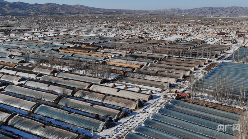 连片温室成阵,衬村落远山,绘冬日产业图(央广网发 原州区委宣传部供图)