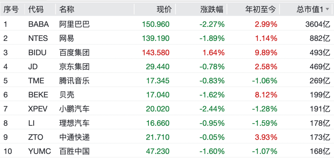 中概股多数下跌,纳斯达克中国金龙指数跌1.3%。热门中概股方面,阿里巴巴、小鹏汽车跌超2%,网易、贝壳跌逾1%,京东集团、理想汽车、中通快递纷纷下跌。