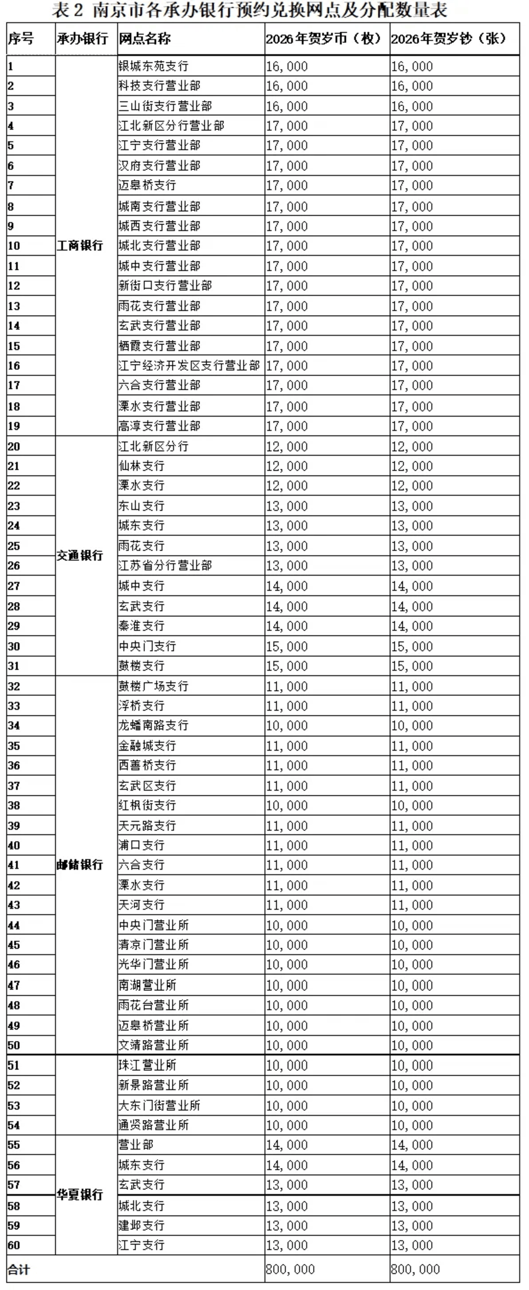 江苏省2026年贺岁币、2026年贺岁钞预约兑换工作由中国工商银行、交通银行、中国邮政储蓄银行、华夏银行四家银行在江苏省内的分支机构共同承担,全部采取线上预约方式。
