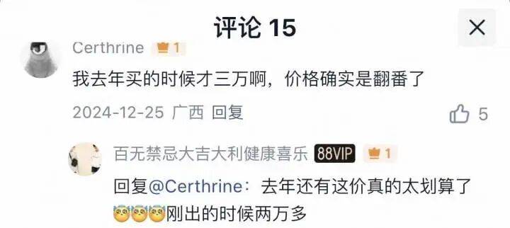 商品评价区一位买家留言说:自己在2024年4月购买了同款项链,金重69克总共花了45000元。而另外一位在2016年左右入手的买家说,自己的入手价格为2万元。