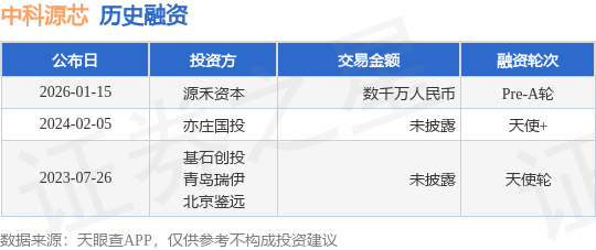 证券之星消息,根据天眼查APP于1月15日公布的信息整理,北京中科源芯光电科技有限公司Pre-A轮融资,融资额数千万人民币,参与投资的机构包括源禾资本。
