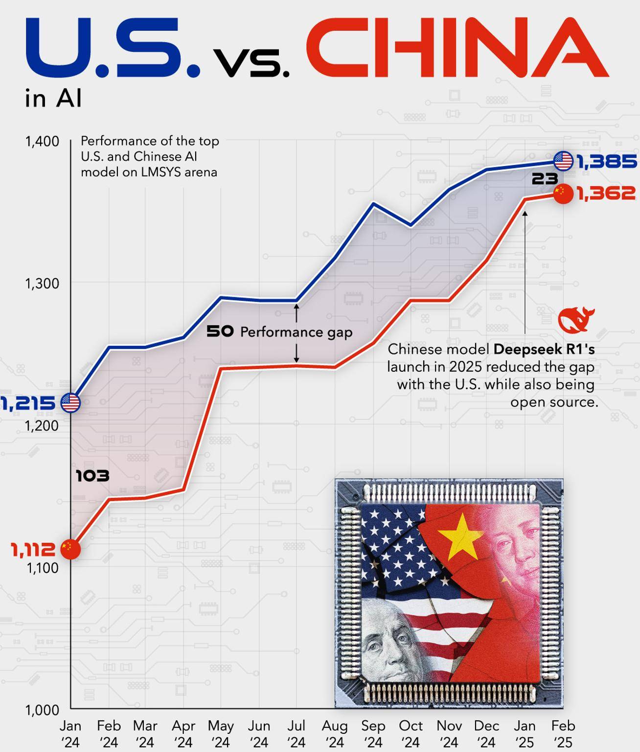 美国手里持有的牌是在变少,而不是增加:金融方面它依旧强大,在人工智能方面还有一些优势,半导体等高端制造业如果有日韩的输血,或许能有所反弹。但除此以外,很难想象更多。