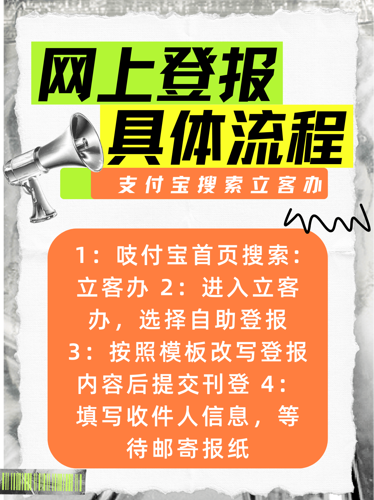 2.线上便捷平台:这是目前最推荐的高效方式。通过吱付宝或微信小程序,您可以随时随地办理,全程线上完成,审核速度快,并且可以在线选择报纸、在线支付、在线获取电子凭证。