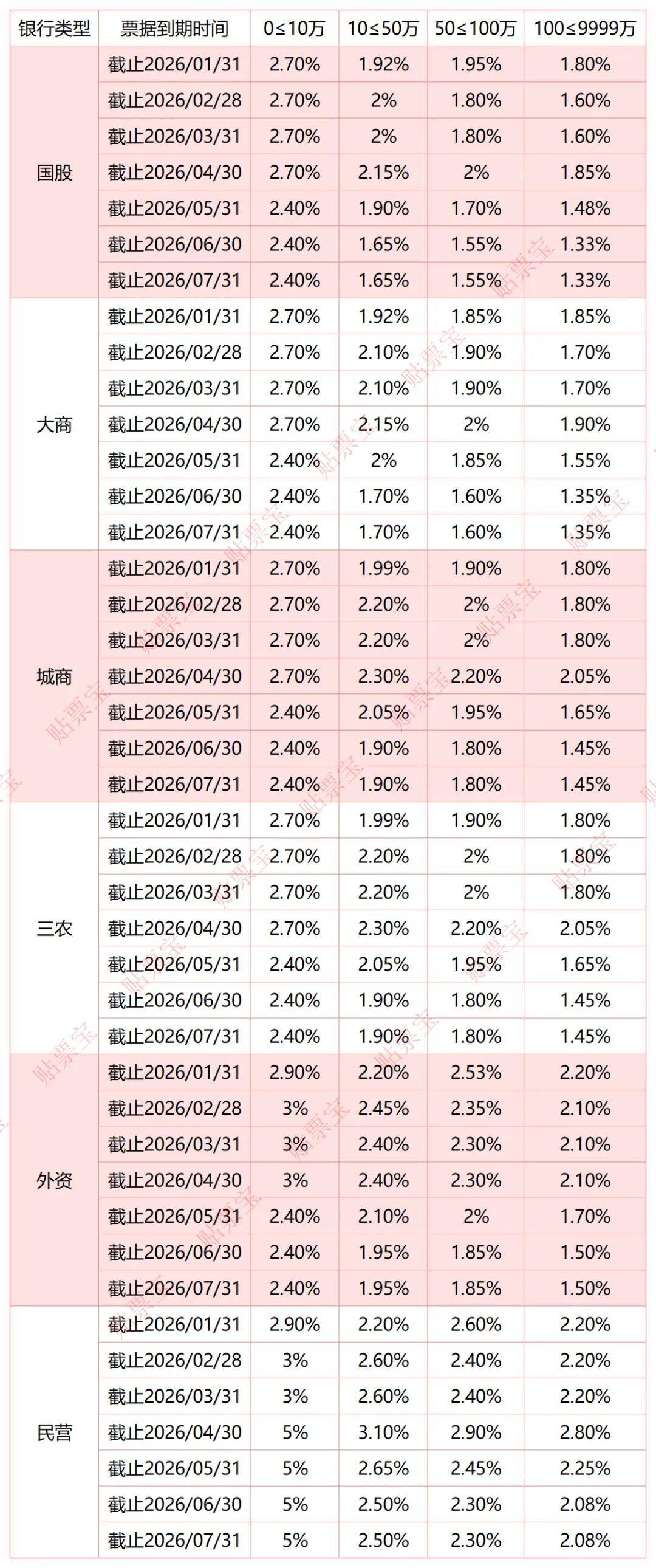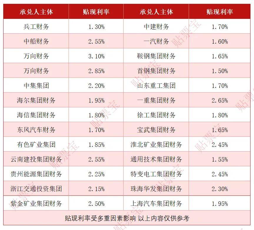 以下为2026年1月22日的银行承兑汇票贴现利率报价表(来源贴票宝):