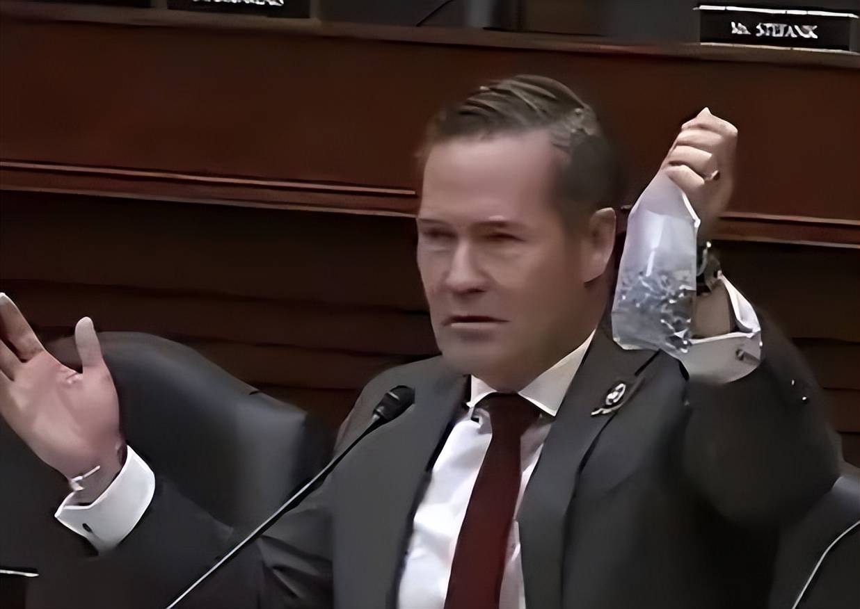 2024年预算听证会上,佛罗里达州众议员迈克·沃尔兹拿出一袋零件质问空军部长。