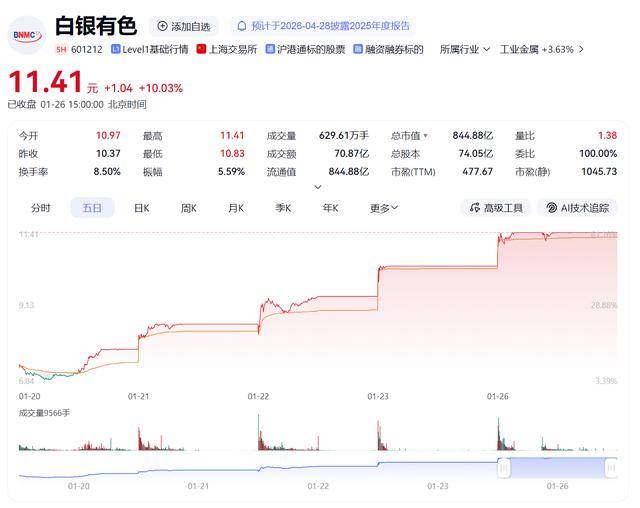 连续五个交易日强势封板,单日成交额爆出70.87亿元“天量”,白银有色(601212.SH)的股价狂欢在高位迎来关键降温信号。