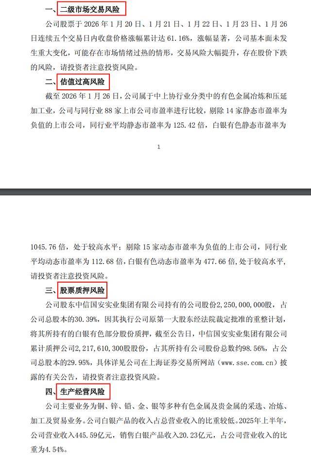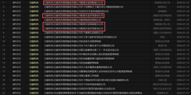 但从白银有色近期密集发布的公告可见,其内容不仅未出现足以支撑五连板股价涨幅的实质性利好,反而暗藏多项风险提示与利空信号。