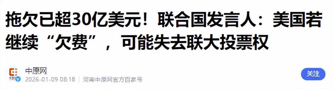 美国这次真把联合国逼到墙角了。2026年1月8日,联合国秘书长发言人迪雅里克公开对媒体表示:如果美国继续拖欠会费,将面临失去联合国大会投票权的风险。这一表态可以说是联合国给美国下的最后通牒——一个长期标榜国际规则的超级大国,如今竟成了全球最昂贵的老赖。这不仅仅是偶尔的资金周转困难,而是一个有系统的赖账行为。更具讽刺意味的是,美国一边自诩为世界警察,四处宣扬国际秩序,另一边却连联合国的会费都不愿支付,这样的局面简直像是在倒退历史。