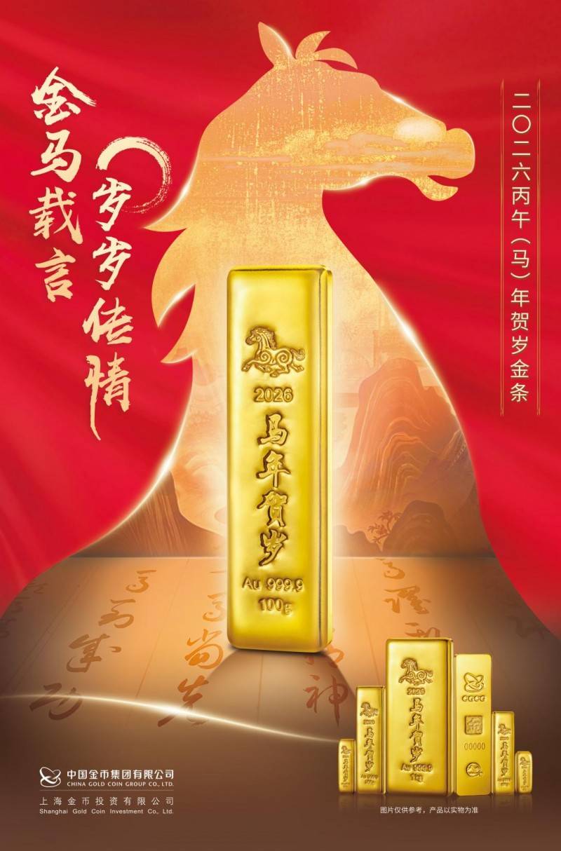 金马载言,岁岁传情!2026丙午(马)年贺岁金条,以金寄情,愿您在新的一年里,乘“马”之势,争创佳绩,开启人生崭新的华彩篇章!