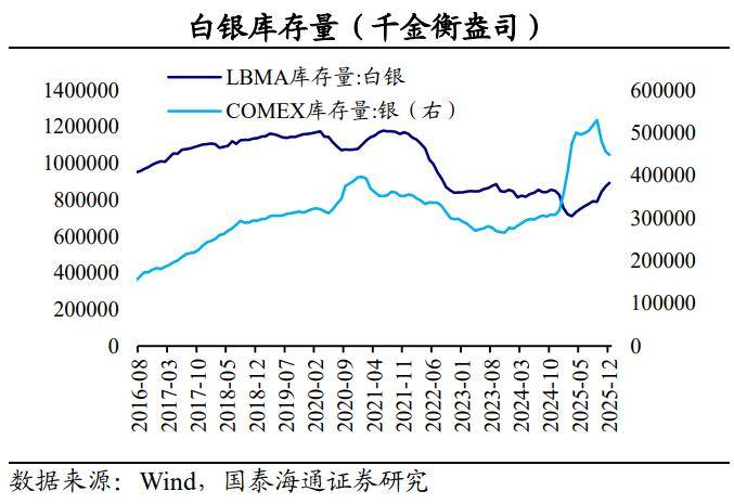 值得一提的是,区域沉淀会使“流通银”减少,改变库存结构。当伦敦现货极度短缺,出现高于纽约的高溢价,甚至推高白银的借贷成本时,交易商会将白银从纽约运至伦敦出售以赚取价差,溢价也随之缓解。这体现了市场对政策风险和即时套利机会的快速反应。但与之不同的是,2021年以来,印度通过进口持续囤积白银,实质上是将伦敦、纽约等全球核心仓库中的白银单向转移到了区域性库存中。与存放在伦敦金库、可用于支撑ETF赎回或租赁的白银不同,区域沉淀的白银退出了国际性的流通和金融交易体系,加剧现货市场的结构性紧张。