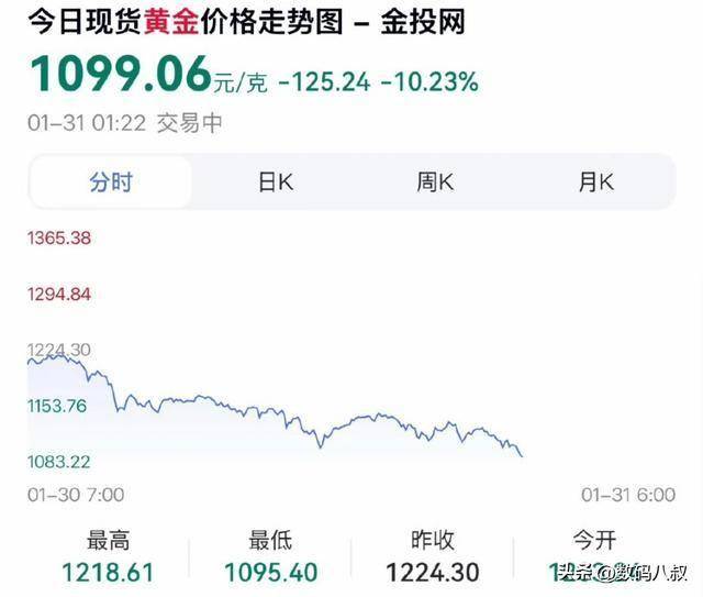 突发大行情!贵金属市场上演惊魂暴跌,国内金价短短两天从1240元/克直线下探,直接跌破1100元/克关口,最低触及1099元/克,单日跌幅超10%,无数投资者直呼“一夜回到解放前”。