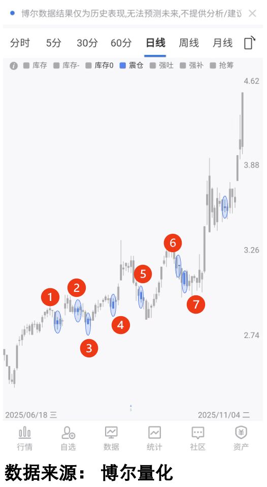 二、量化数据帮你看穿“折腾”背后的真相阿凯第一次看到这个数据的时候,眼睛都直了,说原来之前觉得“磨人”的震荡,全是机构在搞动作。就拿刚才那只股来说,在股价反复折腾的那段时间里,一共出现了八次「机构震仓」现象,前面七次都在震荡阶段,只有最后一次是股价启动后才看出来的。