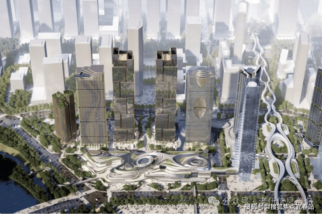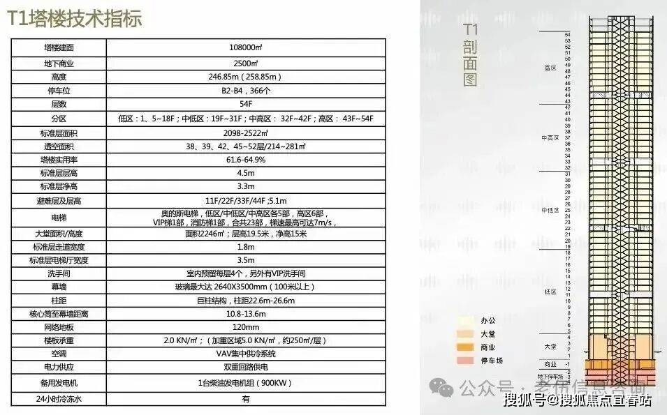 两栋超甲级写字楼分别是T1栋建筑高度为268米共54层和T2栋建筑高度为180米共37层。