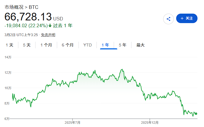 3月2日,据彭博报道,做市商Wintermute援引摩根大通数据发布的最新报告称,自2024年底以来,散户资金持续向股票市场转移,这一趋势在去年10月加密市场崩盘后显著加速。比特币价格较历史高点约12.6万美元已近乎腰斩,目前交投于6.6万美元附近,而股票指数则持续走高。