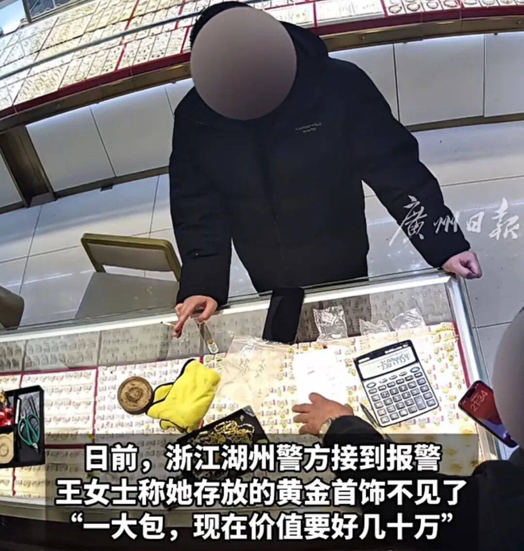 日前,浙江湖州警方接到报警,王女士称她存放的黄金首饰不见了:“一大包,现在价值要好几十万!”