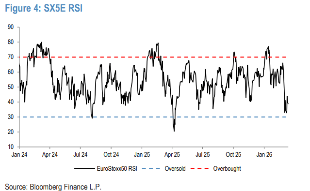 摩根大通观察到,市场叙事已从冲突初期的"逢低买入",迅速切换到"押注持久战、油价新高、复刻2022"。然而,技术指标与仓位数据并不支持"彻底出清"已经完成——主要市场RSI仍在30以上,持仓变化更多体现为降低风险敞口,而非普遍转向净做空。这种情绪上的"投降",在Matejka团队看来反而抬高了继续追空的成本。