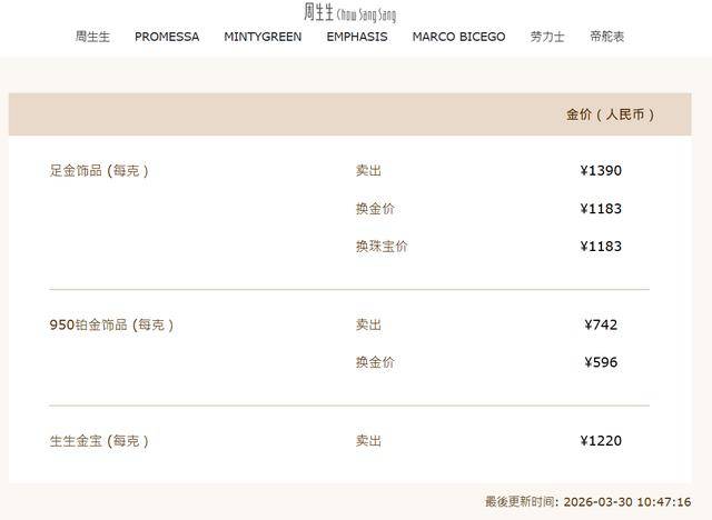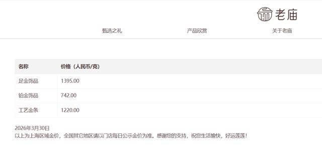 与此同时,国内品牌金饰30日也进行了二次调价。中新经纬9时30分查询发现,周生生足金饰品报1378元/克,老庙黄金足金饰品报1385元/克;10时47分查询发现,周生生为1390元/克,日内涨12元;老庙黄金为1395元/克,日内涨10元。