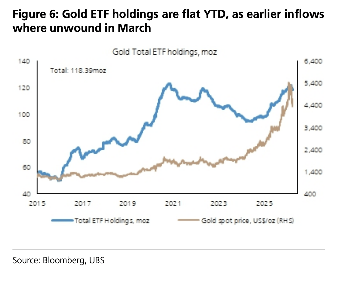 在价格层面,瑞银把短期定义为“噪音很多”:地缘局势的新闻循环会让金价继续震荡、盘整;但中期逻辑仍指向新高,并将2026年金价年均预测下调至5000美元(此前5200美元,主要是对一季度的账面调整),维持年底目标价5600美元(1月底设定)。