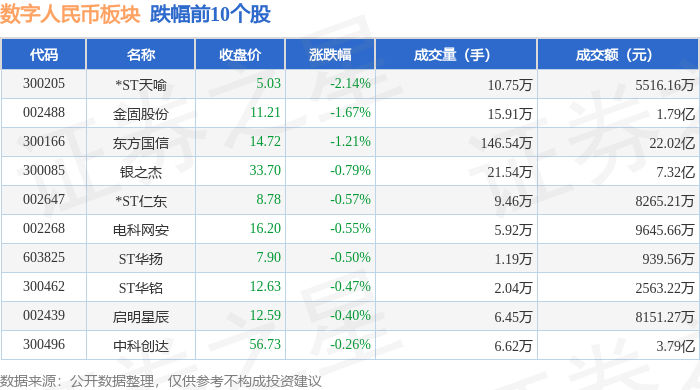 证券之星消息,4月7日数字人民币板块较上一交易日上涨2.11%,新晨科技领涨。当日上证指数报收于3890.16,上涨0.26%。深证成指报收于13400.41,上涨0.36%。数字人民币板块个股涨跌见下表: