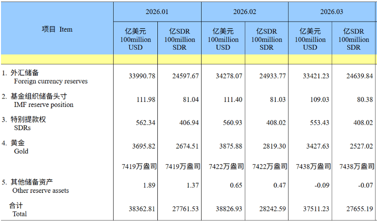 “2026年3月,受全球宏观环境、主要经济体货币政策及预期等因素影响,美元指数上涨,全球主要金融资产价格下跌。汇率折算和资产价格变化等因素综合作用,当月外汇储备规模下降。”国家外汇管理局相关负责人表示,我国经济运行总体平稳、稳中有进,高质量发展取得新成效,为外汇储备规模保持基本稳定提供支撑