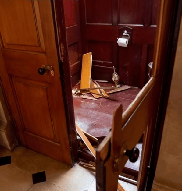 据检方介绍,2019年9月14日,5名窃贼驾驶两辆偷来的汽车,径直撞开布莱尼姆宫紧锁的木制大门,用大锤砸开窗户进入建筑,精准锁定这只金马桶所在位置,“将金马桶拆除,任由水管敞着口,自来水哗哗往外流”,然后火速逃离。