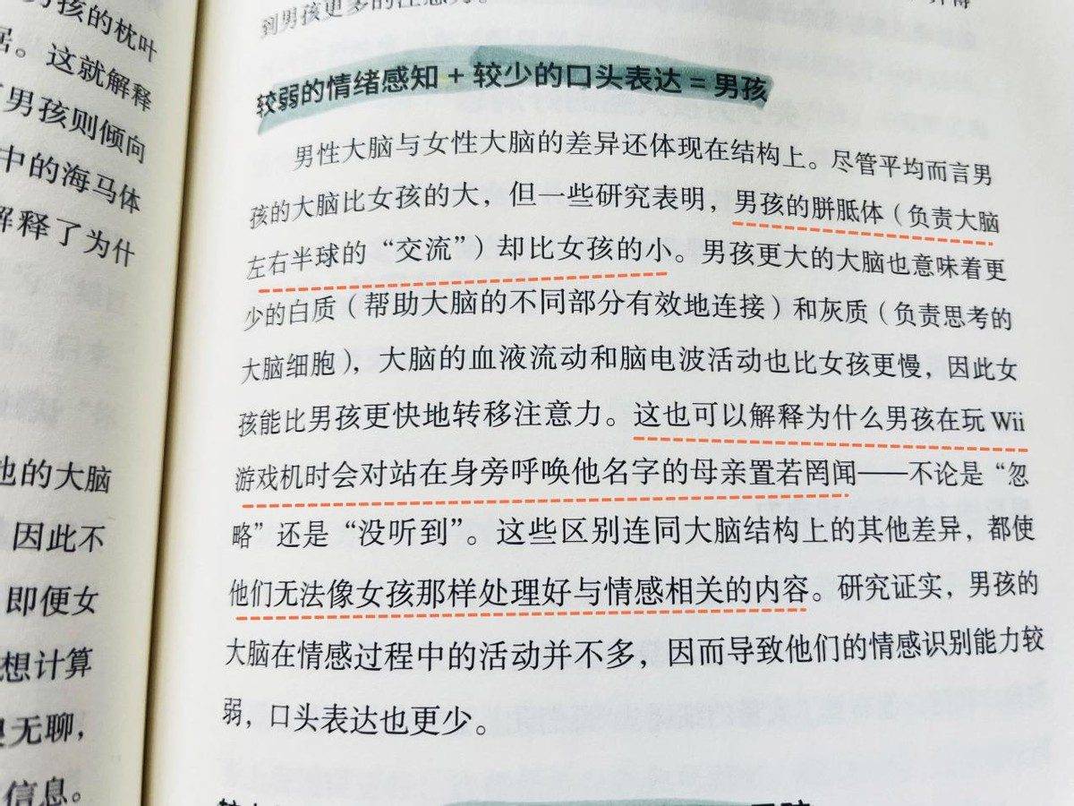 《野性养育》一书中,作者提到:男孩和女孩协同左右脑的胼胝体亦是存在差距,使男孩左右脑协调输出的连接比不上女孩顺畅。