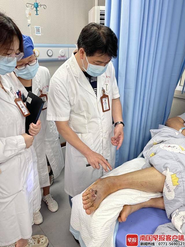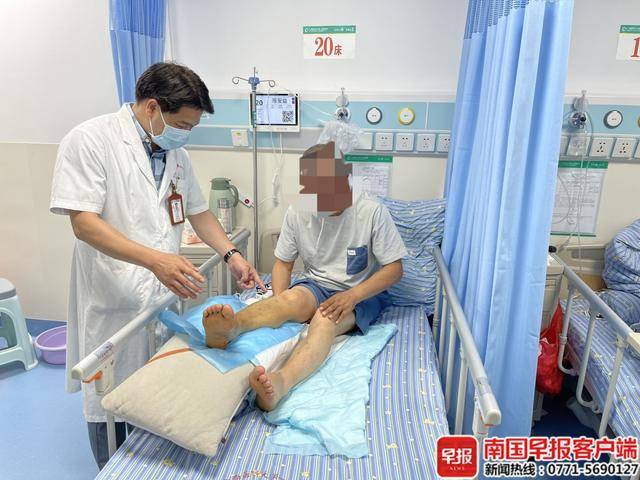 王威正在查看被蛇咬过的伤口。广西医科大学第一附属医院供图