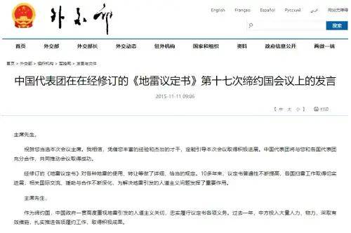 ▲中国在1981年加入了《特定常规武器公约》,并1998年批准经以上修正的第二议定书
